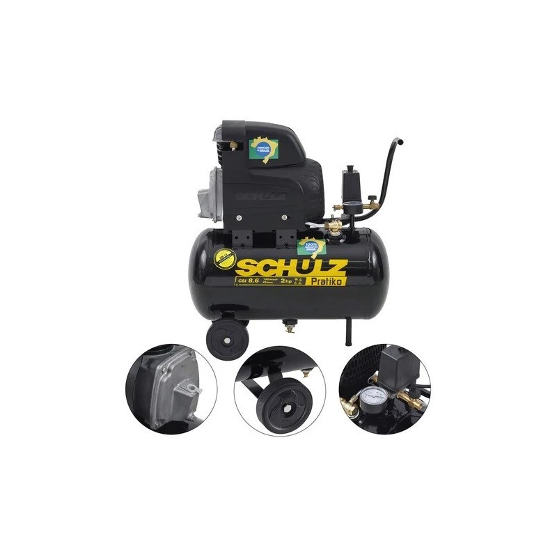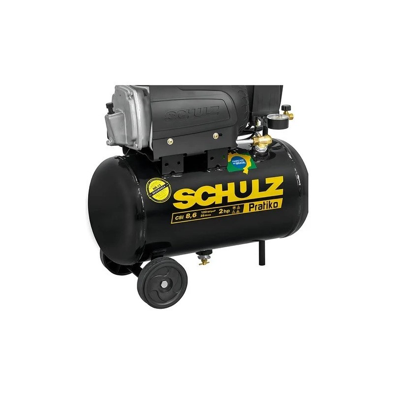 O Compressor de ar 8,6 pés 25L 2 hp 120 libras CSI é ideal para calibragem de pneus, inflagem de objetos, limpeza de peças e pequenos serviços de pintura hobby com pistola de baixa produção, além de acionamento de ferramentas pneumáticas como pinadores e grampeadores. Com vazão de 8,6 pcm e pressão de 120 lbf/pol², o Pratiko CSI 8,6/25 é ergonômico e fácil de usar, conta com cabo de manobra e rodas que facilitam seu transporte e manuseio durante a aplicação.