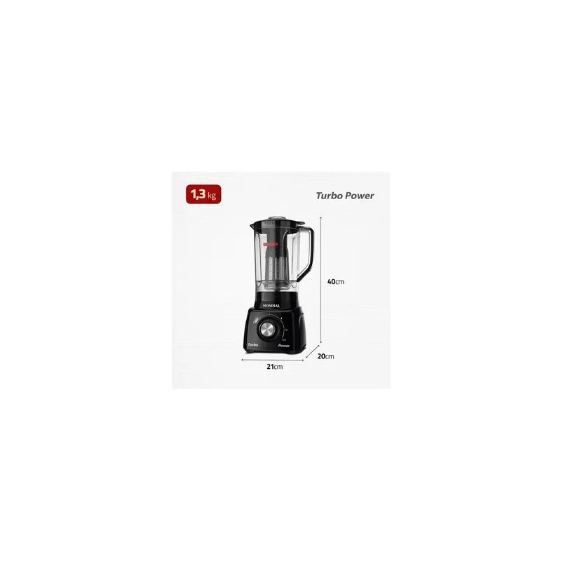 Design moderno e muita praticidade em sua rotina na cozinha. O liquidificador Mondial Turbo Power L-99-FB tem 2,2 litros de capacidade total, 550W de potência e vem acompanhado de filtro em inox, para coar sucos e molhos. Você pode preparar torta de frango, bolo de milho, pão de queijo, massa de panqueca, queijadinha e muitas outras receitas com agilidade.