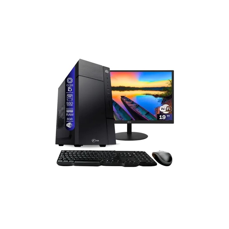 Computador Completo Intel Core i5 2400 com rede sem fio SSD 120GB Memória 8GB Windows 10 Pro Trial + Teclado + Mouse + Monitor 19"